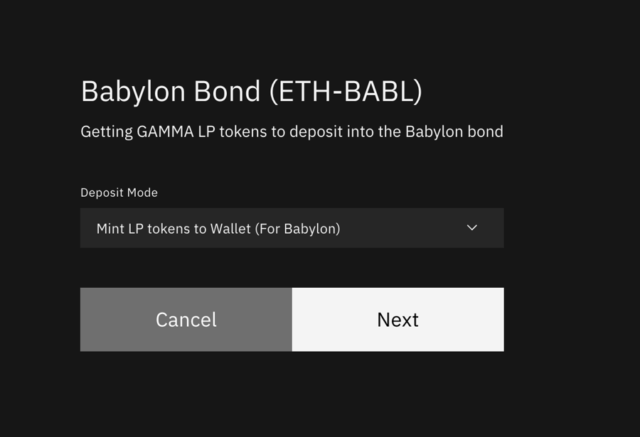 To facilitate the process to add liquidity to the pair, we have paired with Gamma. Users only need to deposit BABL-ETH into gamma and receive typical ERC-20 tokens that then can bond into the heart.