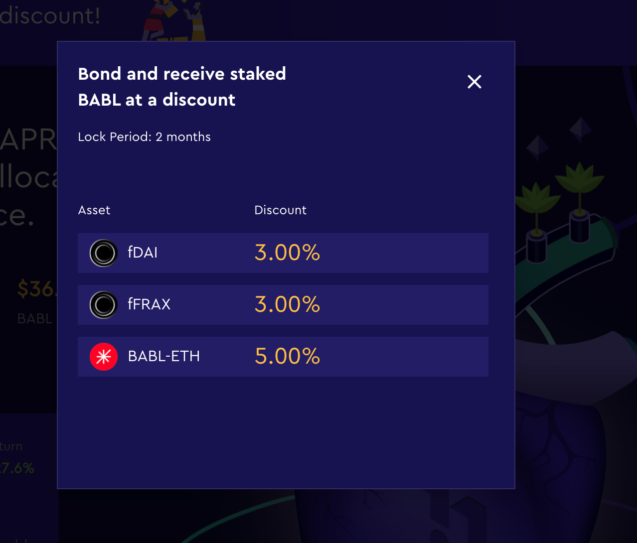 Today, we are excited to introduce the Bond program, so Babylonians can receive extra discounts on BABL staking β up to 10% β for giving the protocol assets that Babylon needs.