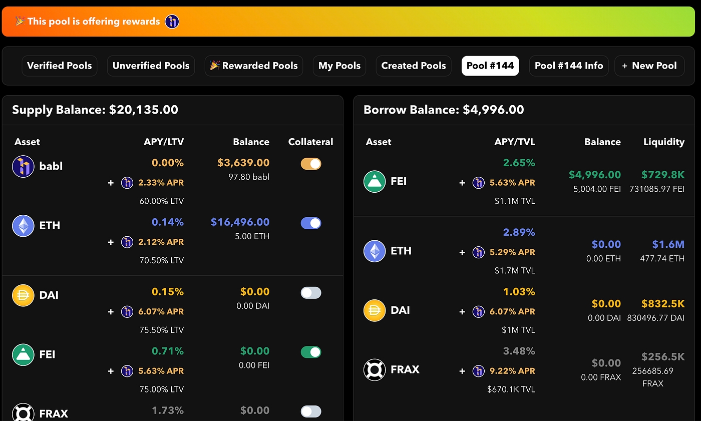 π€ Babylon Gold Lender Fuse Pool LP tokens. We created lending and borrowing markets to allow Babylonians and Gardens to use BABL as collateral. We need to increase the liquidity to expand our support to partners.